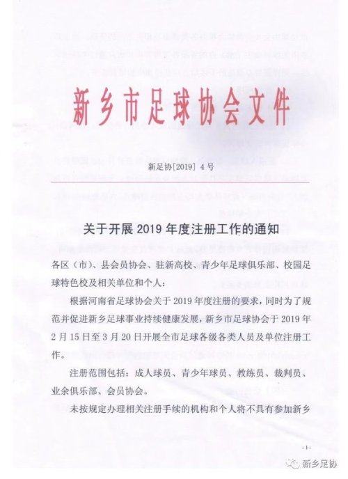 响应市级足协号召,县足协开展关于2019年度注册工作的公告