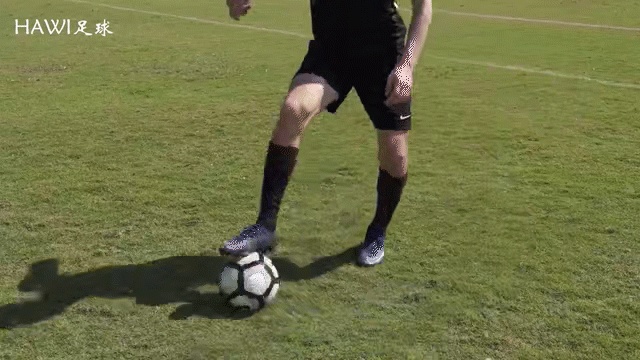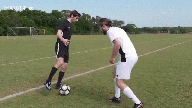 当你在面对的防守球员的紧逼时,顺着边线拉球,然后用同一只脚踩停球,接着向回拉,最后用脚内侧把球推过防守球员。
