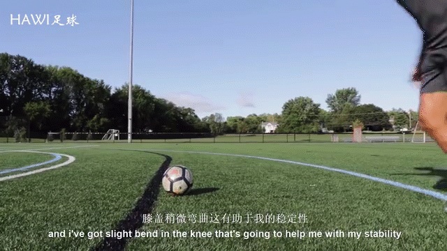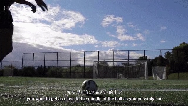 但是我将腿弯曲到几乎是和我的臀部平行的,这样动作的范围很大,你会产生更大的力量,正如你所看到的,球同时也是平直的,门将要想扑出球将会更加困难。