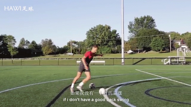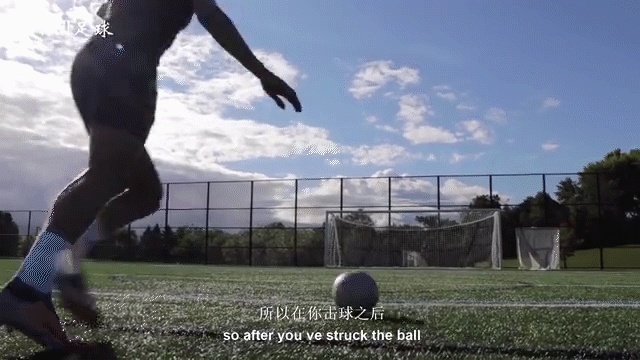 所以有了随前动作,我们想要确保它不随意,这里有几个关键点,你要做的第一件事就是瞄准目标,所以在你击球之后,要确保你的随球方向指向球门,这将提高你的准确性。