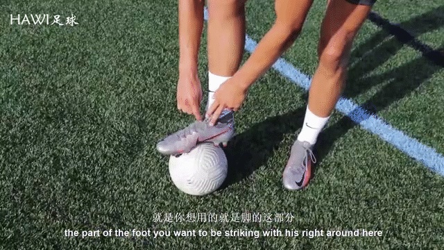 为了产生最大的能量,你要用的就是脚的这部分,它是脚上最硬的骨头,相比于如果你用较软的位置击球,这是一个更干净的击球位置,