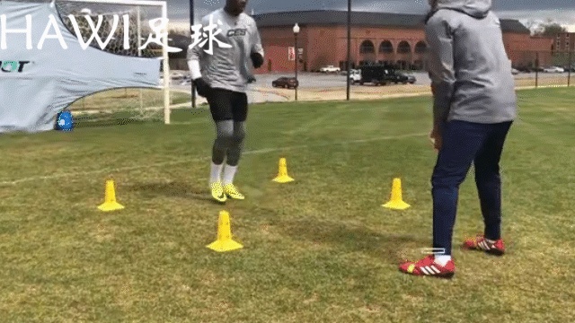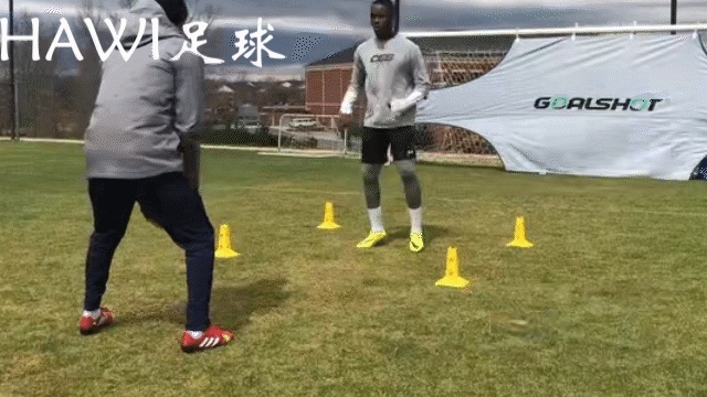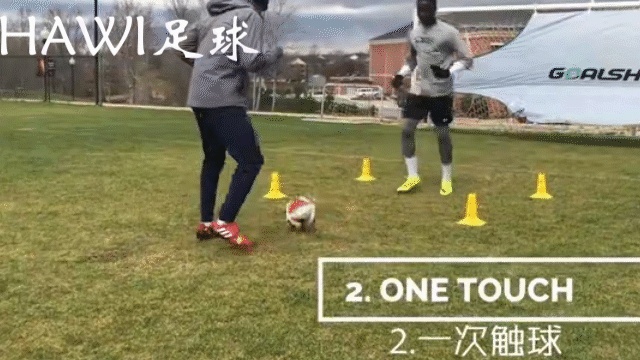 用脚内侧通过两脚出球分别完成停球和传球,要注意脚内侧停球的力度和位置,不要停的过远。