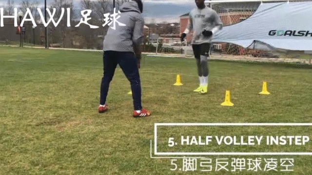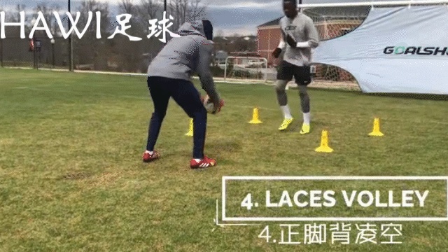 让搭档用双手将球抛向自己身前大约腰部的高度。然后先用大腿直接将球垫一下。最后再用正脚背把球踢还到搭档的手中。