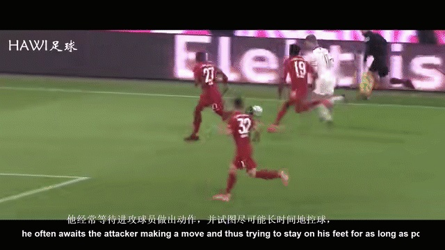 通常情况下,我们的第一反应可能是主动出击,但如果我们看看阿方索·戴维斯,他通常会先靠近对手,然后等待对手先迈出第一步,接着利用这个绝佳的时机赢得球权;