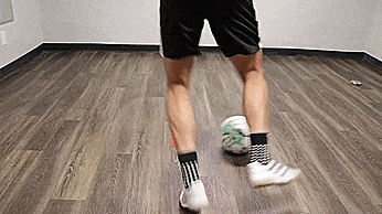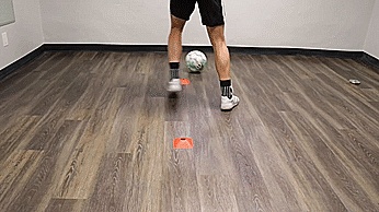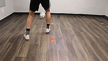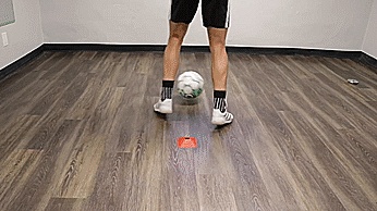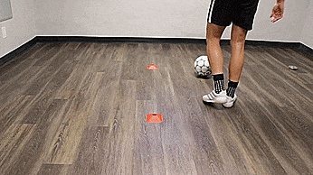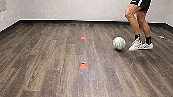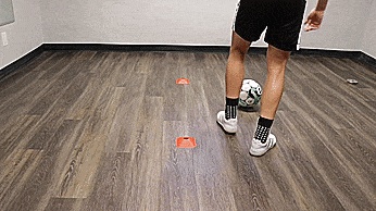 我们只要把球推到我们身边,控制住它,然后用另一只脚传球,保持节奏,连续一分钟不间断。
