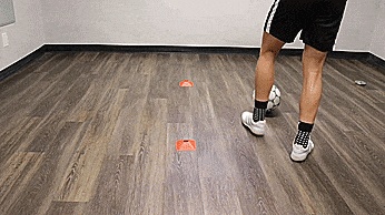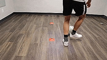 再踢回去,回撤定向第一脚触球,然后在相反的方向重复这个练习,练习一分钟,不要停。