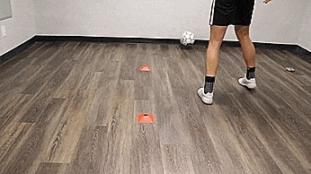 换脚,用脚底拉球,接着用另一只脚传球,然后在相反的方向重复。