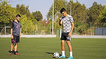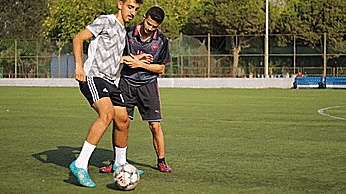 第一步是简单地将球弹起到膝盖以上