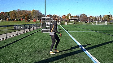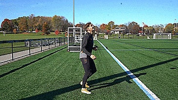 第三个练习,我们使用双脚的脚内侧,所以我们先做一个低触球,然后下一次触球越过头顶,然后在那个高触球上,我们换脚,在另一边重复。