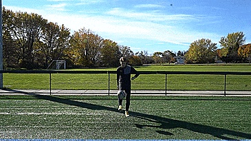第十个练习是交替踢高球,模式相同,每次触球都要保持球在头顶以上,双脚交替进行,确保我们每一次击球都能击打球的中间。