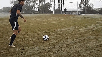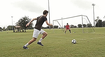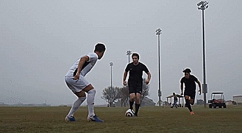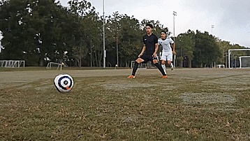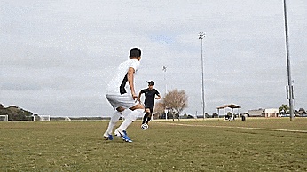 但如果我们在球刚刚弹起后就立即轻踢它的下方,我们就可以马上传球。