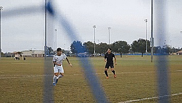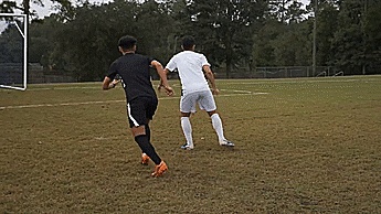 这可能是一个好主意,做一个小小的假射,然后触球越过防守者,以创造更多的空间。