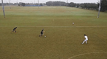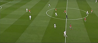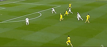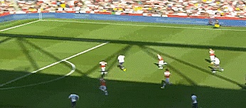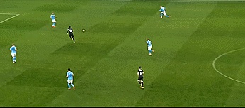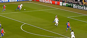 但这个时候队友也已插上而且位置更好,这个时候不要自私,只顾自己射门。