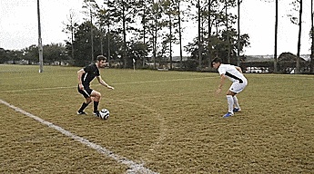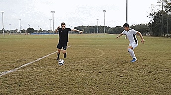 当我们在边路盘带面对防守队员时,我们想给插上跑位的队友做球。