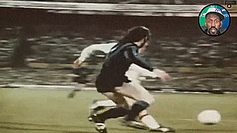 我们能看到的是,克鲁伊夫试图在控制球,这时防守者上前施压,使得他背对着球门,这正是作为防守者应该做的,而作为一名进攻球员,我们必须知道,当一个防守队员扑过来,正是好机会。
