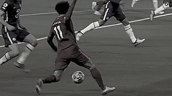 他的另一个原则是节奏,是先停后走,他会停下来,然后突然启动,很多球员都会这个技能,很多球员都明白这个原则,我们们会看到在这些片段中,展示的并不是什么华丽的东西,但如果我们能理解它,它会为我们创造机会,下面场景中的萨拉赫就是根据这个原则进的球。