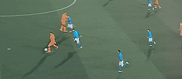 当然,这取决于防守者,如果他们跟过来,我们就会转身,如果他想跟住我们,我们就假装要到一边,身体下沉,但把球留在这边。