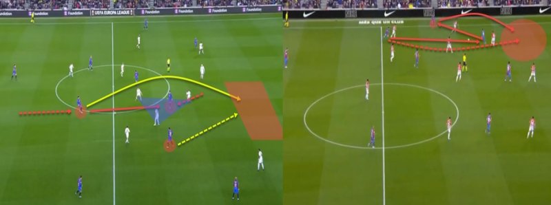 但更重要的是,因为托雷斯移动到了左边的肋部,它使巴萨在进攻时能够占据球场上所有的五个垂直通道,