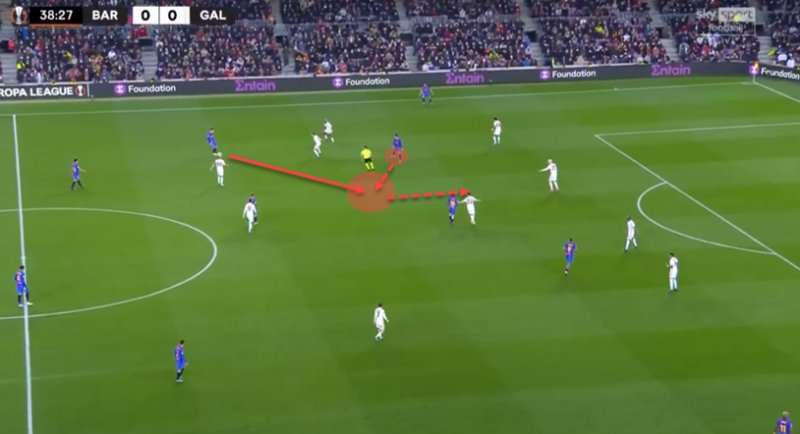 佩德里将球传给阿尔巴,但注意到托雷斯是如何向球移动的,而不是试图攻击与他们左后卫相同的空间。