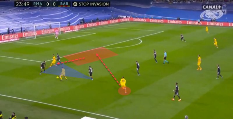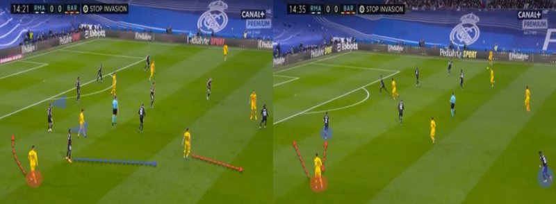 同样,巴萨的中后卫也需要能够用他的传球来跟进这种跑动。