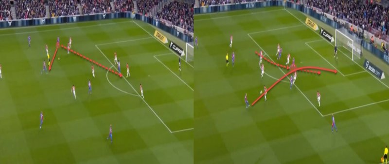 这不算复杂,只需看到空间在哪里打开,然后坚决地攻击它,不幸的是,阿尔维斯的传球没有串联起来,但意图和整个构思仍然清晰地显示出来。