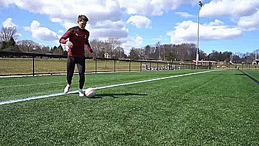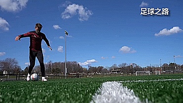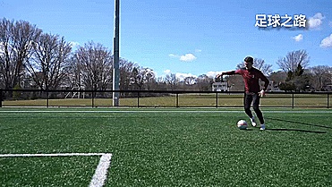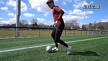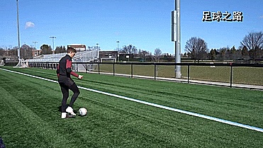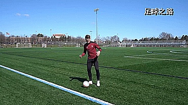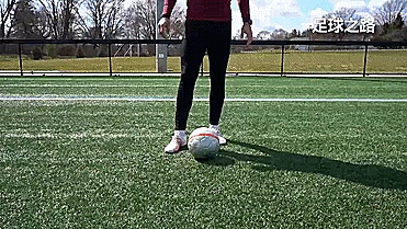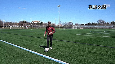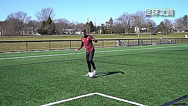 所以当我们绕过球的时候,先到达球的前面,然后我们支撑脚小跳,接着用脚内侧将球击到另一只脚。