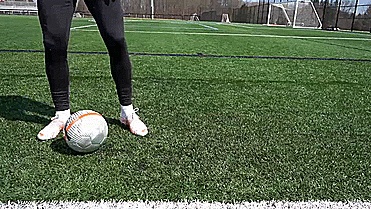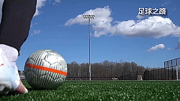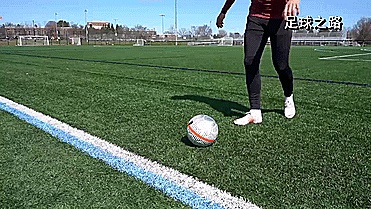 我们用脚面顶部鞋带旁边的位置推球,然后把球转移到小脚趾区域。