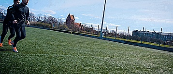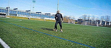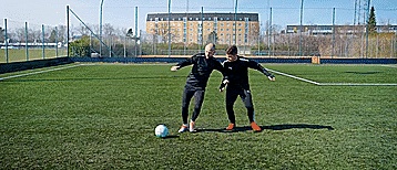 所以我们要向侧面面对他们,用脚掌滚动球,然后我们就可以一直保护球了。