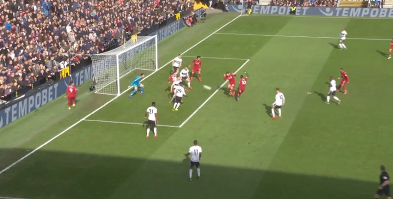在下面的例子中,萨迪奥·马内的射门角度很大,距离很短,但在球门和他之间有几个对手球员。
