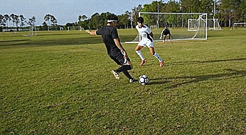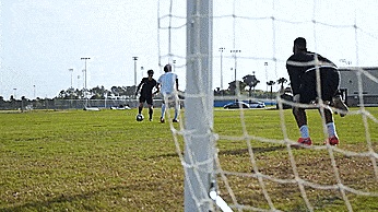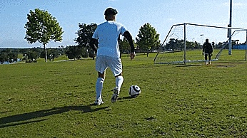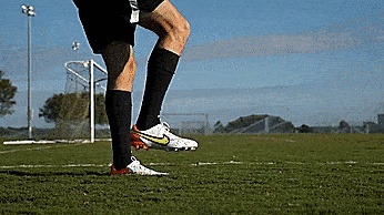 转动我们的脚踝使其倾斜,让球向球门折射反弹。