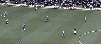 这个传球的关键是要把它放低,正如它的名字所示,滑过草地,就像下面这样,非常有力,非常低,这里的技术是,和普通长传球一样,用脚的骨头凸起部分击球。