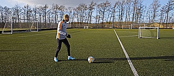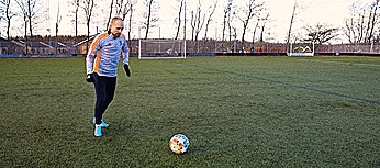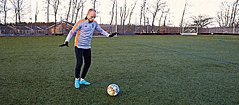 现在,当我们要击球时,我们要确保用脚背顶部的骨头部分击球,我们可以感觉到它比脚的其他部分稍微硬一点,这是“子弹”长传的关键。