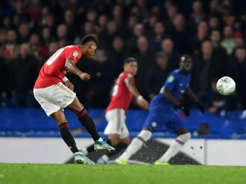 因为我们要击打球,并尽量不产生旋转,所以从球后面击球很重要,如果我们从一个角度射门,我们就有可能增加球的旋转,而不是飘忽不定的蝴蝶球。