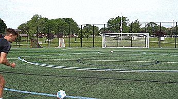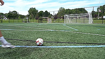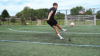 如果我们正在踢一个弧线球,我们通常会用脚兜住球,或者如果我们正在做一个回旋球,我们通常会随球摆向目标,因为我们要触球时间相对大,以增加旋转和速度。