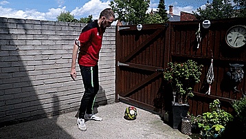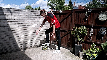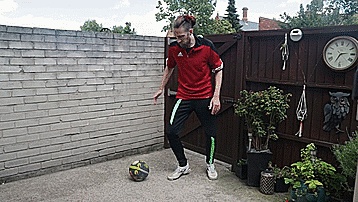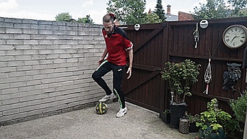 我们把球放在脚踝上面,球会向左或向右下落很多次,我们要尽可能多地训练,直到我们的脚踝变得灵活,所以,一旦我们觉得把球放在脚踝上很舒服,感觉很稳定,就可以进行第五步了。