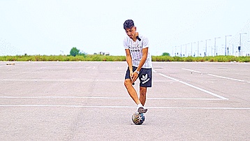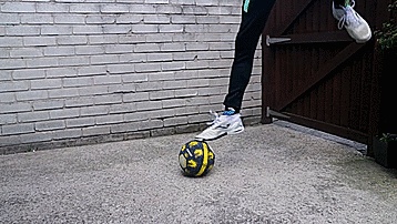 我们要做的就是把惯用脚放在球上,然后把弱势脚从惯用脚上面跳过去。这将帮助我们用正确的技术跳起来,所以只要把我们惯用脚放在球上,用弱势脚跳起来。