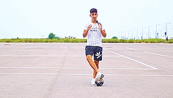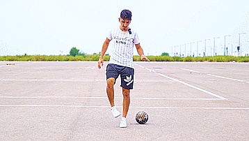 第五步,我们掌握了把球放在脚踝上的技巧之后,要尽可能多地训练,能轻易的像下面这样上下,最后一步就是技巧本身了,如果我们成功做到了前面的五步,那么我们就已经知道如何做月食了。