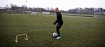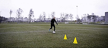 只有当惯性形成时,我们才能改变我们的身体姿势,向另一个方向轻触球绕过他们,或用脚外侧拨球从他们两腿之间穿过。