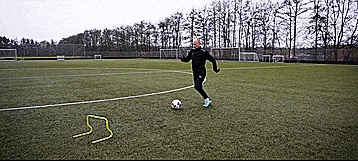我们的动作要足够逼真,这才能让防守队员上当,在拉球之后,我们用同一只脚的内侧突然踢向来时的方向。