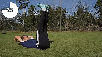 接下来是强度稍微大一点的仰卧起身,我们把腿直立在空中。