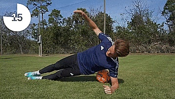 最后重复同样的练习,但这次是在相反的一边,这样我们的身体两侧都能保持平衡。一样的,左脚外侧和左前臂支撑身体,然后右臂摆动触球。
