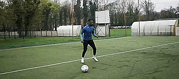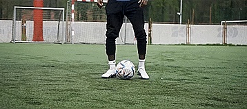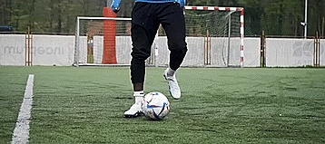 为了做到这一点,我们要用我们的脚内侧触球,然后连接一个跨步单车,向另一个方向触球。