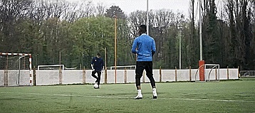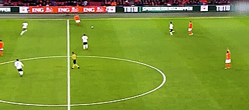 德容的假动作也一样,当球向我们飞来时我们得到球,但这次我们不是靠向一边,而是向内触球。