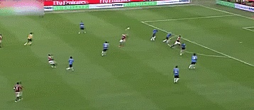 所有的一切都是通过在禁区内拿球,快速释放,所以当我们在禁区内的时候,要设法转身快速射门。