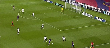 他什么都不用担心,他身后的后卫不用担心,守门员也不用担心,没人会担心,我们没有威胁的