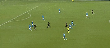 所以首先我们要知道,一旦拿到球,一旦我们转身,一旦我们看到空当,我们就带着速度、节奏和目的进攻。