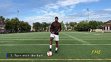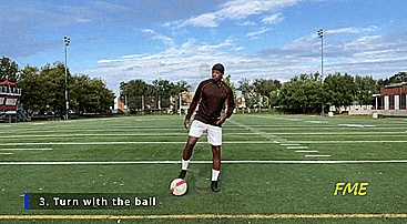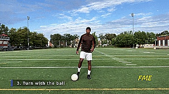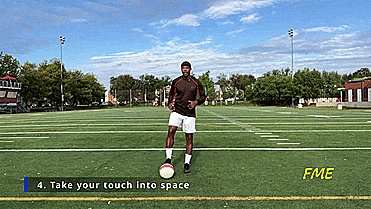 最后,当你把球拉回来并带球转身后,用你的另一只脚进行下一次触球,获得空间并远离防守球员