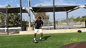 用另一只脚的内侧停住球,一旦我们停住球,就用我们停球的那只脚把球反方向拉回我们的身体,然后我们继续这样来回做。
