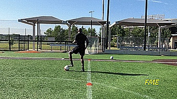 慢慢地开始练习,以适应用这种方式运球,当我们越来越适应时,我们可以提高练习的速度。开始时,尝试每只脚来回运5次球,当我们越来越熟练时,尝试每只脚运球10次。