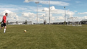 如果我们想要给他一个很好的进球机会,就考虑将球传到他将要跑入的空当,而不是直接传给他。